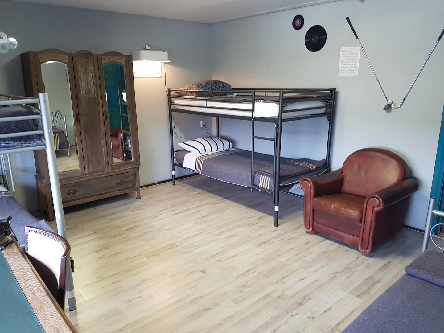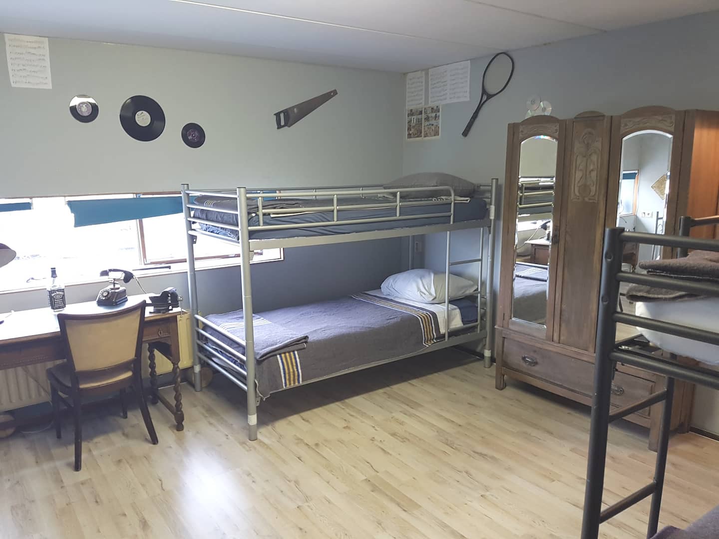Three theme-bedrooms (Tools – Maps – Music Room) each provide a double bed and a double sleeping sofa. Each room can sleep four people. There’s three more sleeping sofas around and single beds in the climbing wall – for those who dare (it’s all at your own risk).