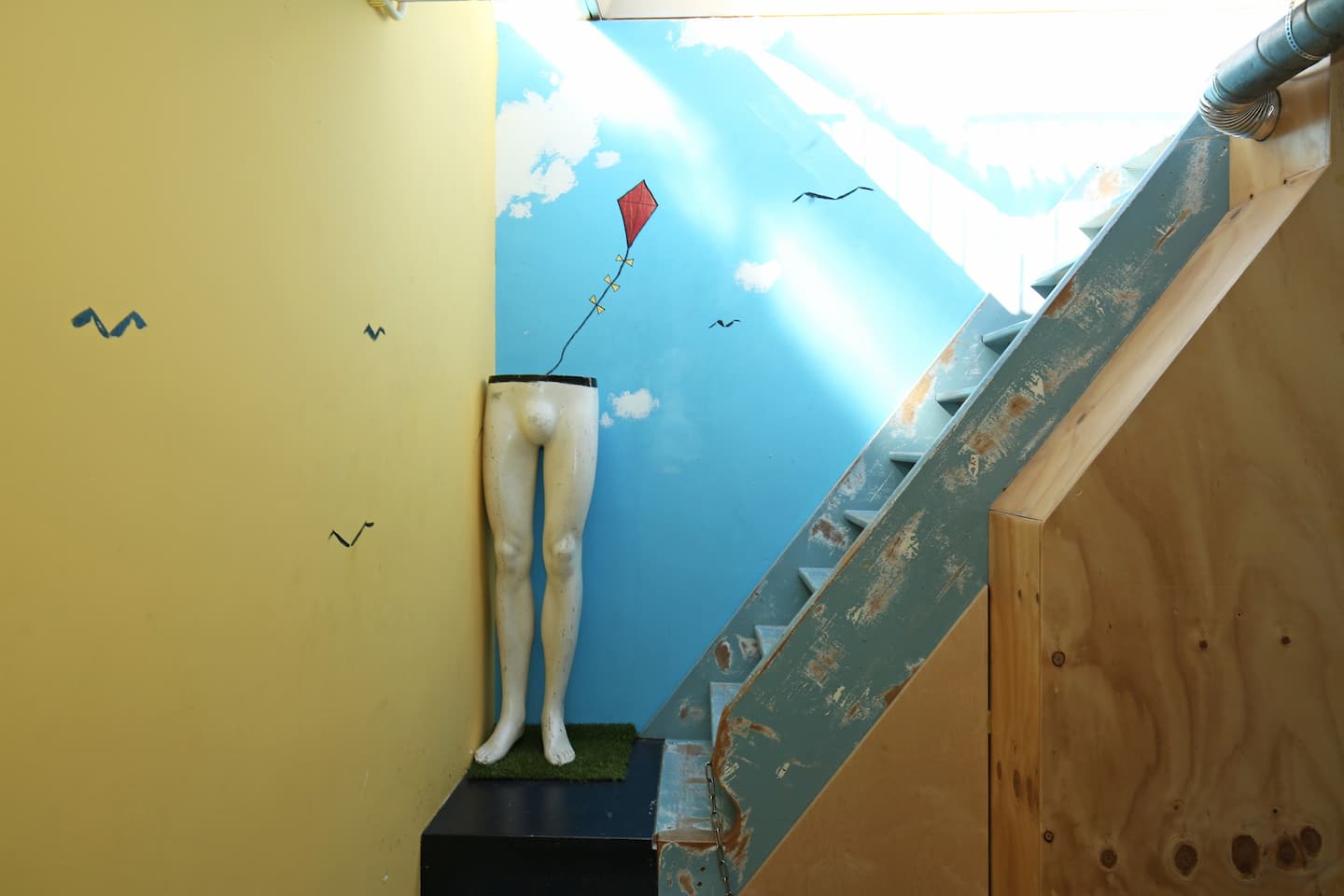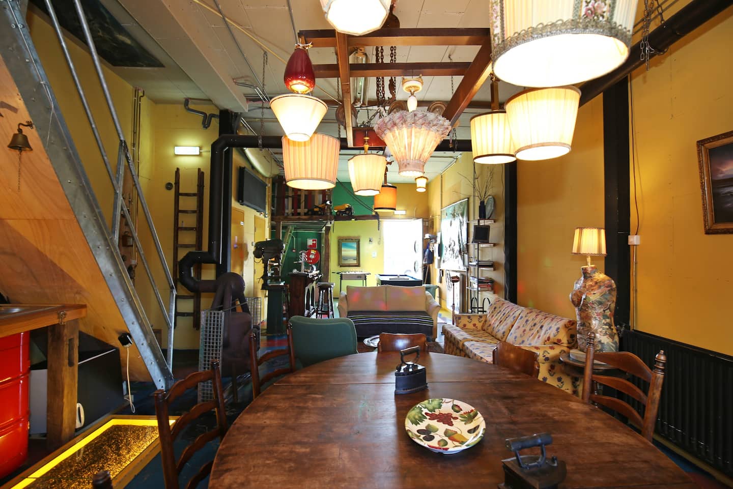 Three theme-bedrooms (Tools – Maps – Music Room) each provide a double bed and a double sleeping sofa. Each room can sleep four people. There’s three more sleeping sofas around and single beds in the climbing wall – for those who dare (it’s all at your own risk).