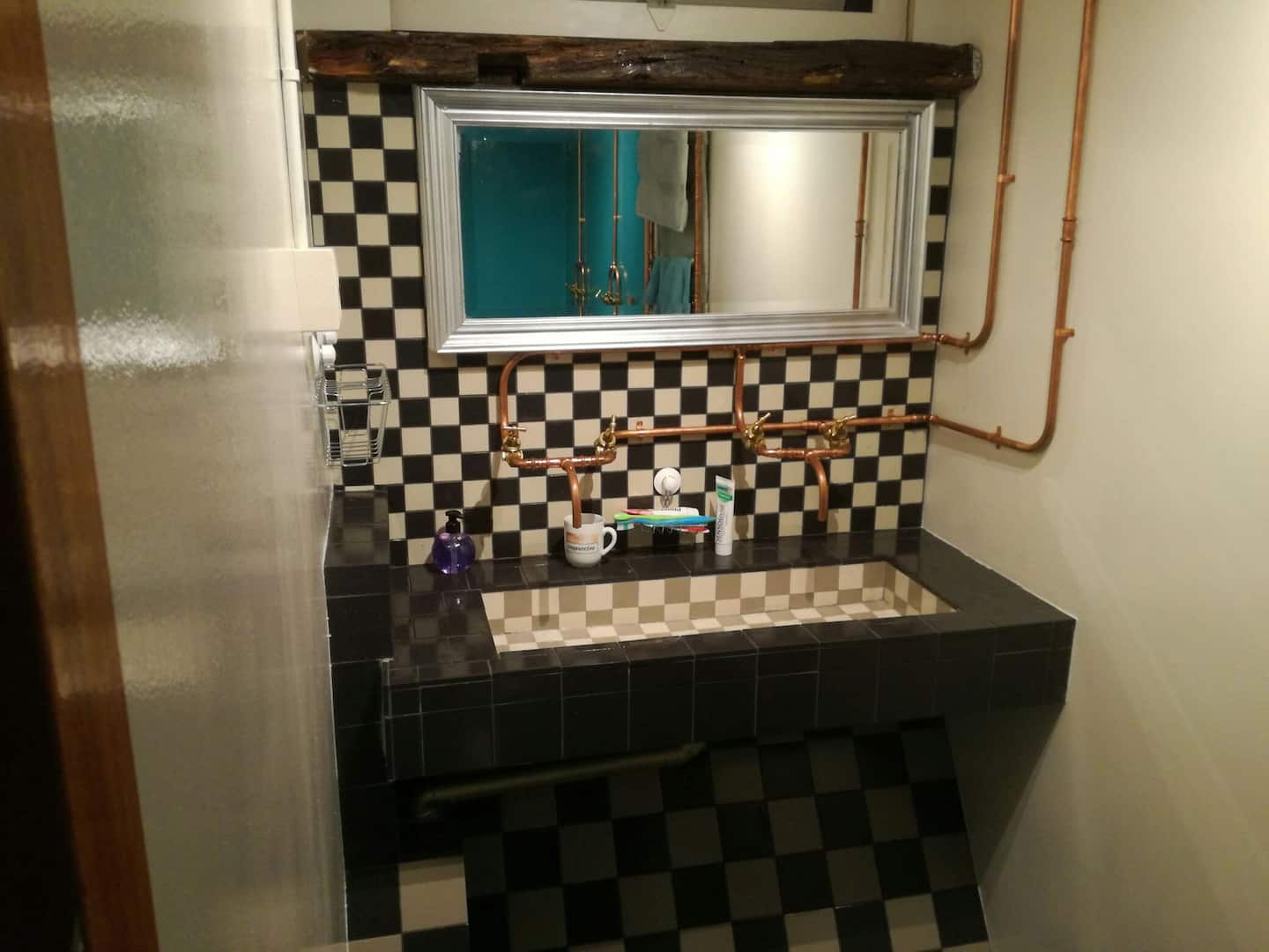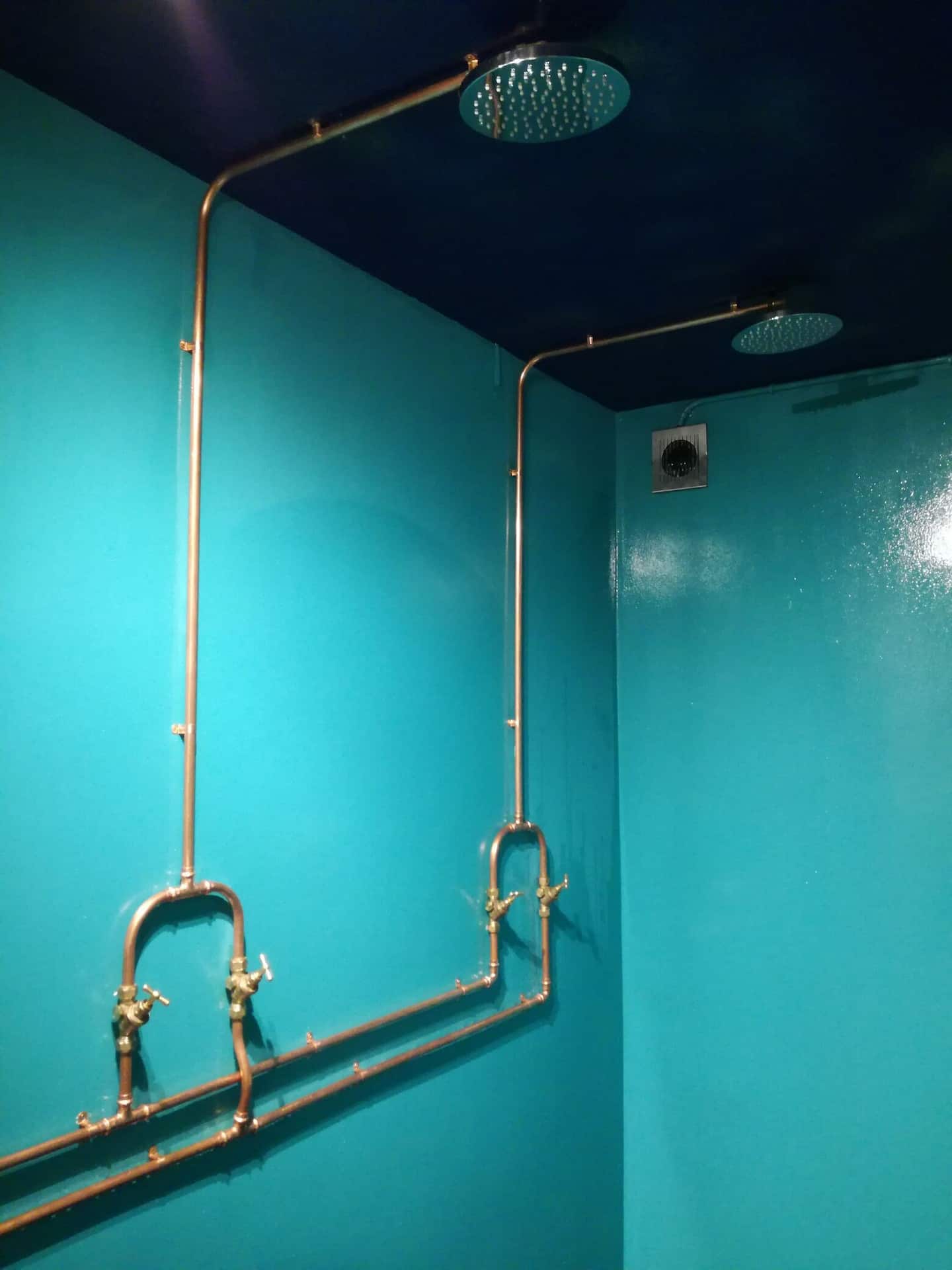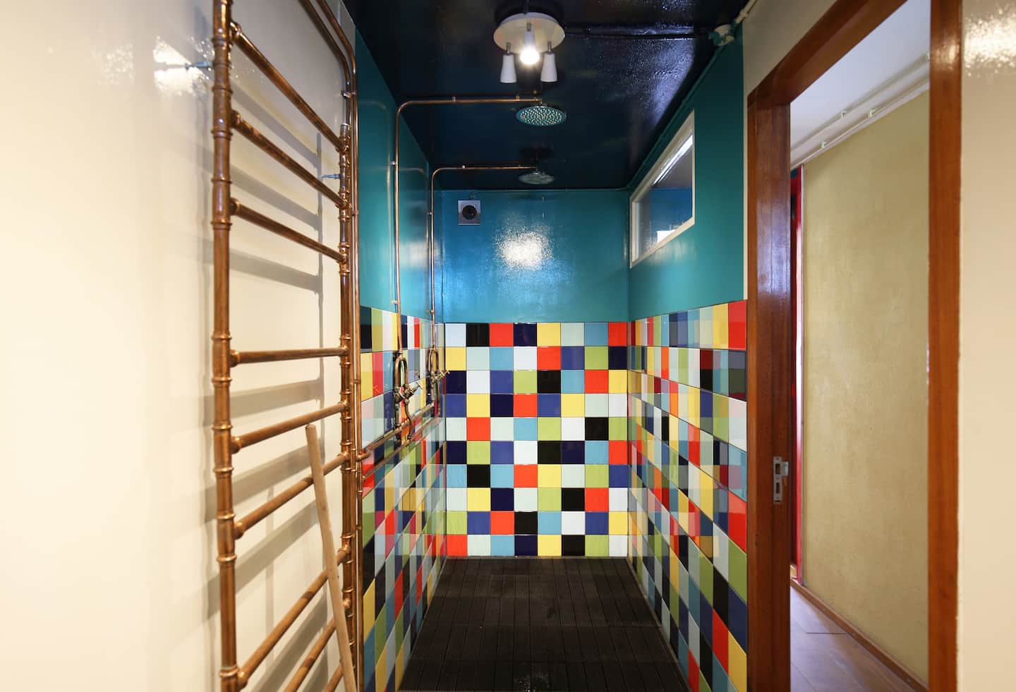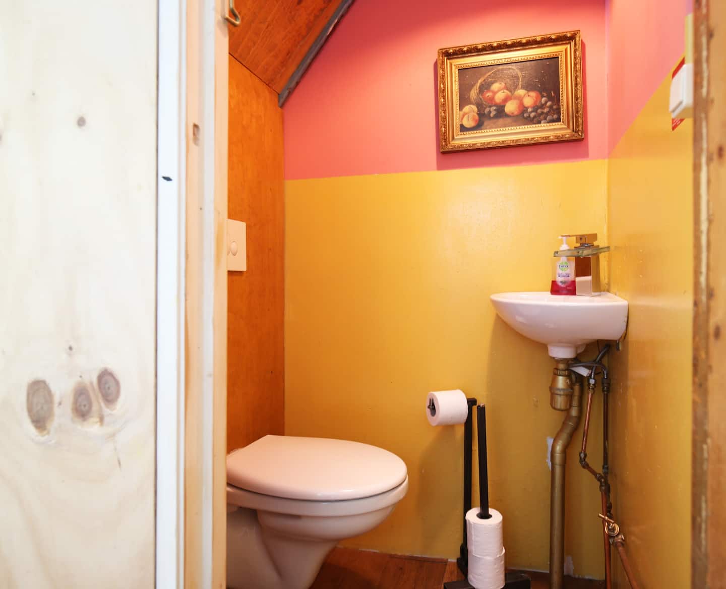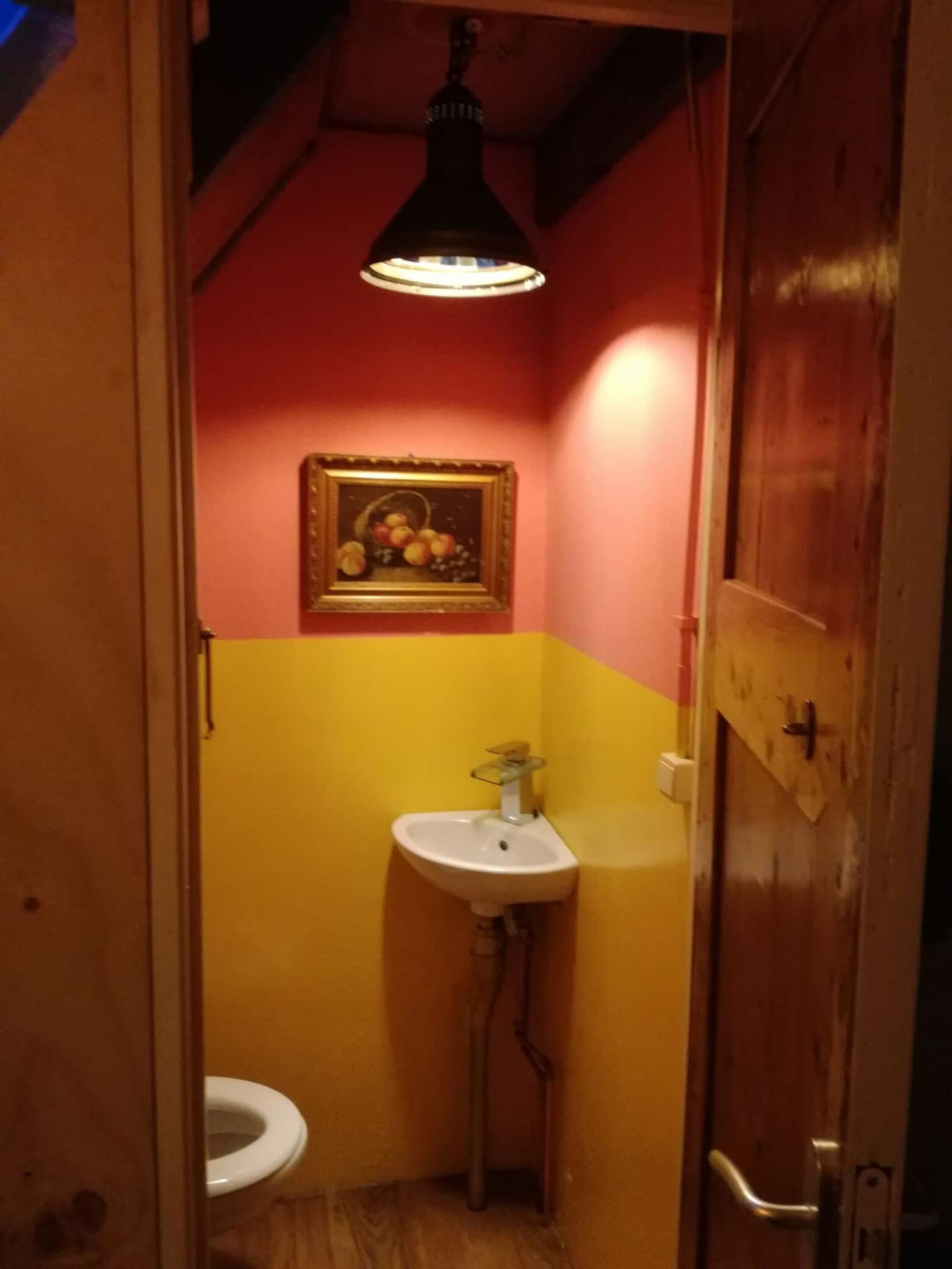 A large shower cabin is made from old ship metal. It has double showers (through old watering cans) so you can take a shower together at the same time. Remember to bring your own towels or rent them in advance.