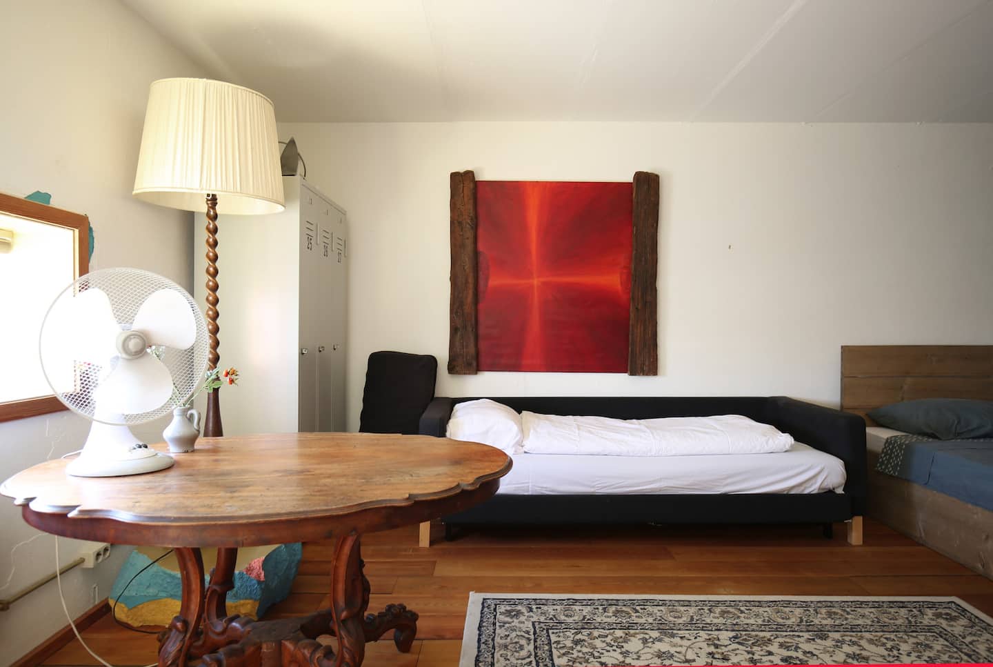 Amsterdam North is the hip industrial area. In the Big Warehouse Hotel apartment you’re part of it! Downstairs is a large lounging area with a bar. Put on some music while you play pool, table football, or even ping pong upstairs. Do try out the climbing rope and climbing wall (you feel like kids again).